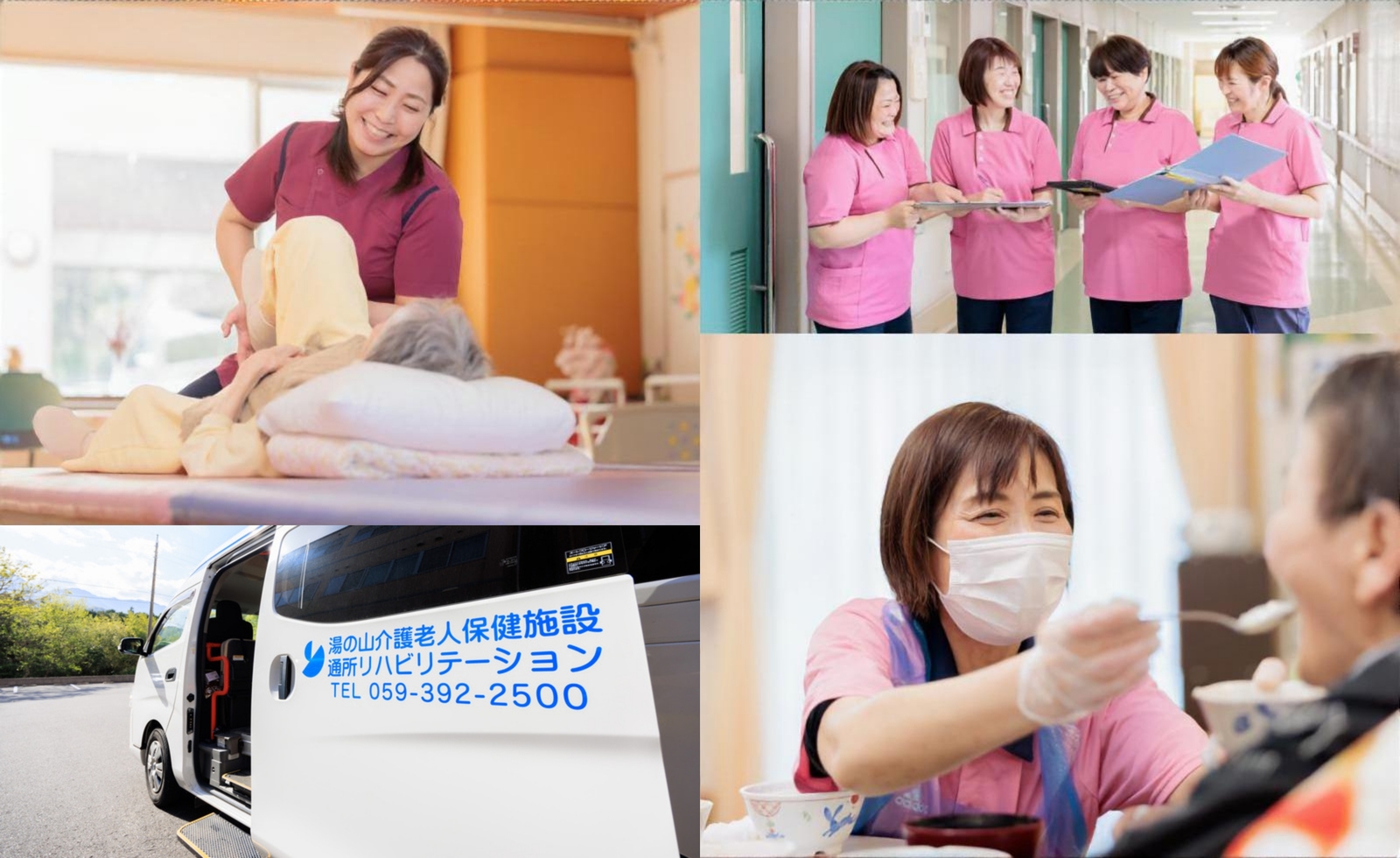 リハビリテーションの充実を図るため多職種による連携を強化するとともに、利用者様の活動性を大切にし、「できる力」に着目した個別の支援を行います。また、認知症の方に対しては、穏やかで安心できる環境をつくり、安全に明るく笑顔で楽しく過ごせるよう、援助することを大切に考えています。